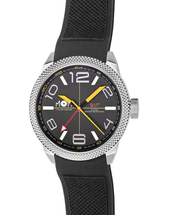 Elegantní pánské masivní hodinky pro opravdové muže. Z designu kolekce Chrono Modena „je cítit“ vůně benzínu a vítězství. Kolekce byla navržená v duchu a ve městě, kde se vyrábějí nejrychlejší motory na světě… Hodinky jsou precizně zpracovány za použití těch nejkvalitnějších materiálů, aby vydržely zátěž každodenního nošení. Hodinky se vyznačují řadou designových a funkčních detailů, které je odlišují od ostatních hodinek. Hodinky lze využít při běžném nošení i sportování, ale také díky svému reprezentativnímu vzhledu i při různých společenských akcích. Hodinky jsou dodávány v elegantním stylovém dárkovém balení ve stylu a stříbrném designu válce v motoru. Funkce: Hodiny a sekundy Datum Parametry hodinek: Pouzdro: ušlechtilá nerezová ocel (bezniklová, antialergická) Průměr pouzdra bez korunky: 50mm Strojek: quartzový bateriový strojek Citizen Sklíčko: minerální antireflexní sklo Náramek: masivní, pryžový, embosovaný náramek pro komfortní nošení Vodotěsnost: 100m (10 ATM) Výrobce: MoM Modena Italy