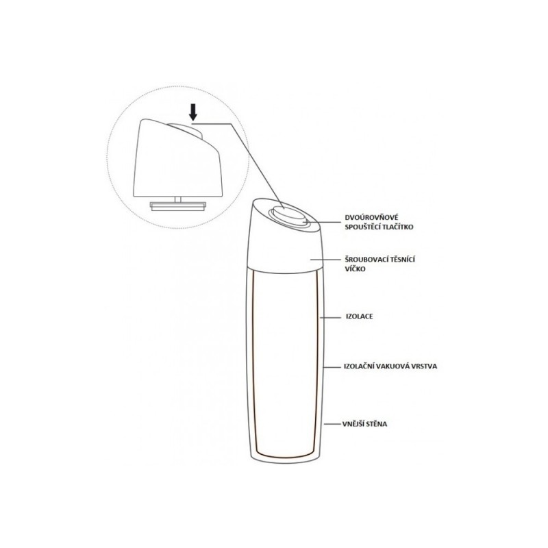 Praktická trendy nerozbitná termo láhev s termoizolační dvojitou stěnou, která udrží teplé nápoje cca 12 hodin a studené nápoje cca 24 hodin.