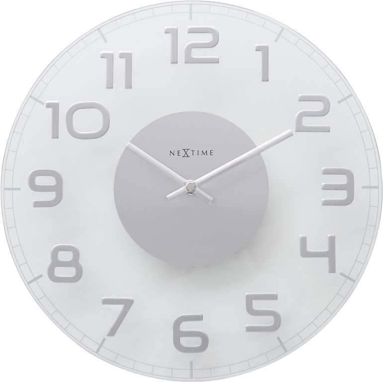 Nextime je holandská designová firma, která se specializuje především na návrhy a výrobu designových hodin. Nextime má více než 40-ti letou zkušenost s tvorbou designu a výrobou hodin. Svoje obchodní zastoupení má Nextime ve více než 50 zemích světa, což z něho činí předního světového lídra mezi společnostmi, které se zabývají produkcí a prodejem designových hodin. Nextime prezentuje široký záběr hodin, které jsou unikátní a inspirativní a nabízí témata vycházející z tradice až do současnosti. Skleněné hodiny s nerezovým číselníkem. Čísla na ciferníku jsou z nerezového kovu a z čirým sklem tvoří zajímavou designovou čistou kombinaci. Průměr hodin: 30cm Hloubka číslic na ciferníku: 2mm Materiál: sklo a kov Quartzový hodinový strojek poháněný baterií. Záruka 2 roky