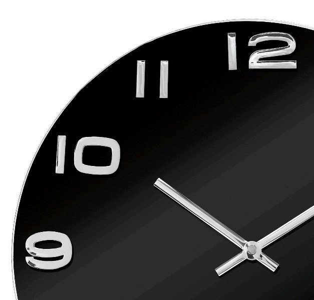 Ciferník v sytě 100% černé lesklé barvě s chromovanými čísly a ručičkami - šedý pás na fotografii hodin je pouze odlesk světla!!!