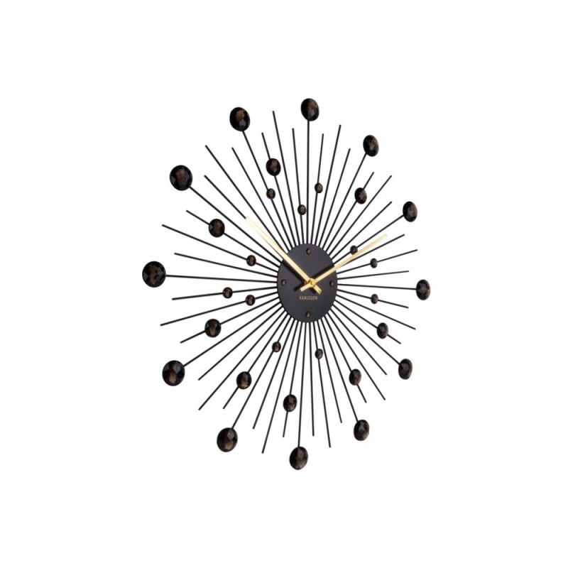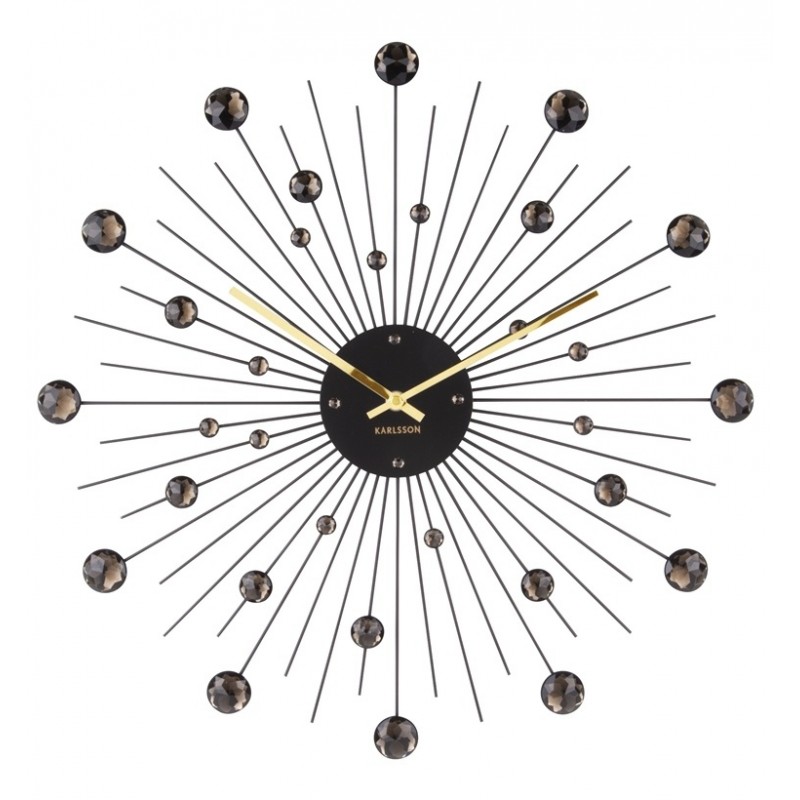Elegantní krystalové nástěnné hodiny z lakovaného kovu se skleněnými "diamanty".