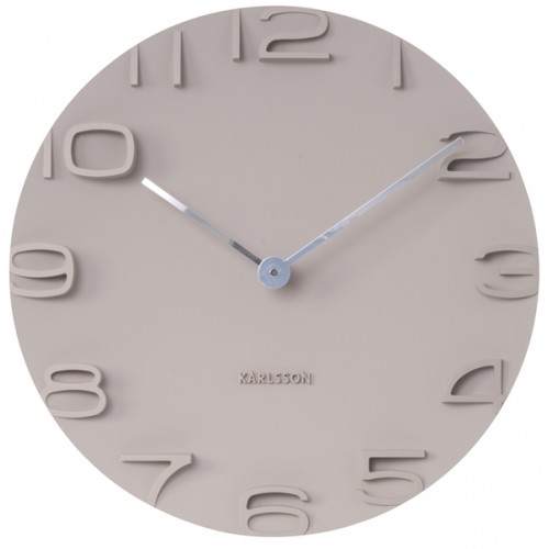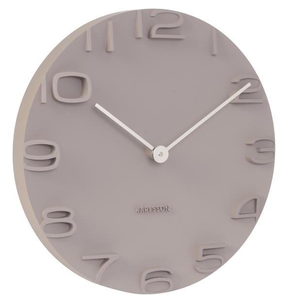 Nástěnné hodiny s embossovanými čísly na ciferníku.
