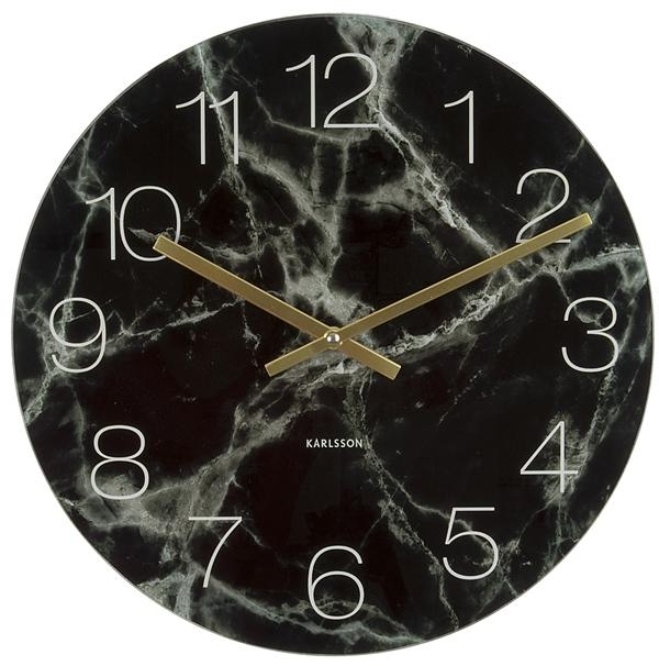 Skleněné nástěnné hodiny s dokonalou imitaci mramoru.