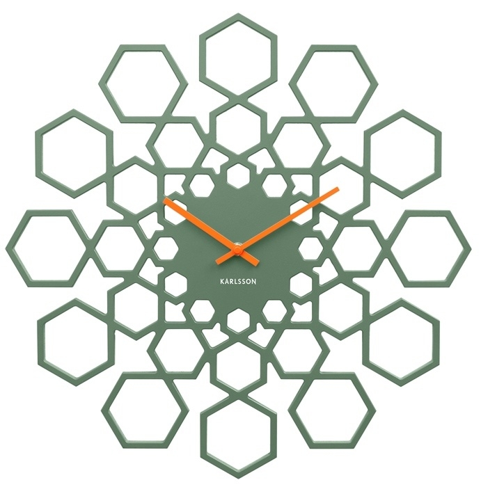 Nástěnné hodiny v designu slunečnice ve tvaru hexagonu.