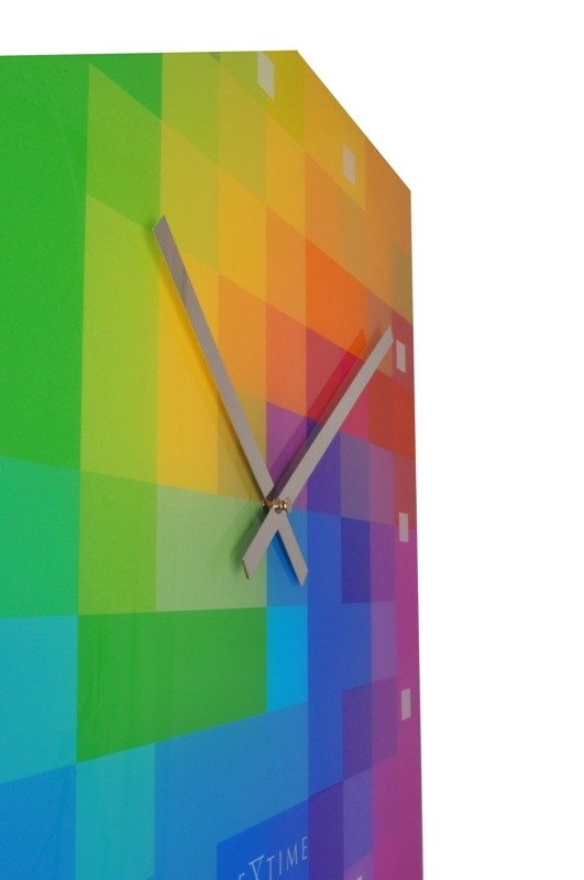 Optimistické nástěnné hodiny plné veselých barev.