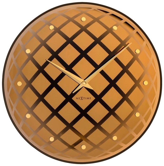 Elegantní skleněné zrcadlové hodiny s dekoračními body číselníku.