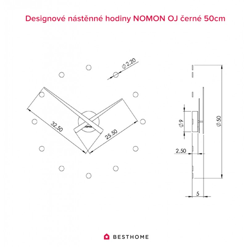 Celkový (bodový) průměr hodin: Ø 50 cm