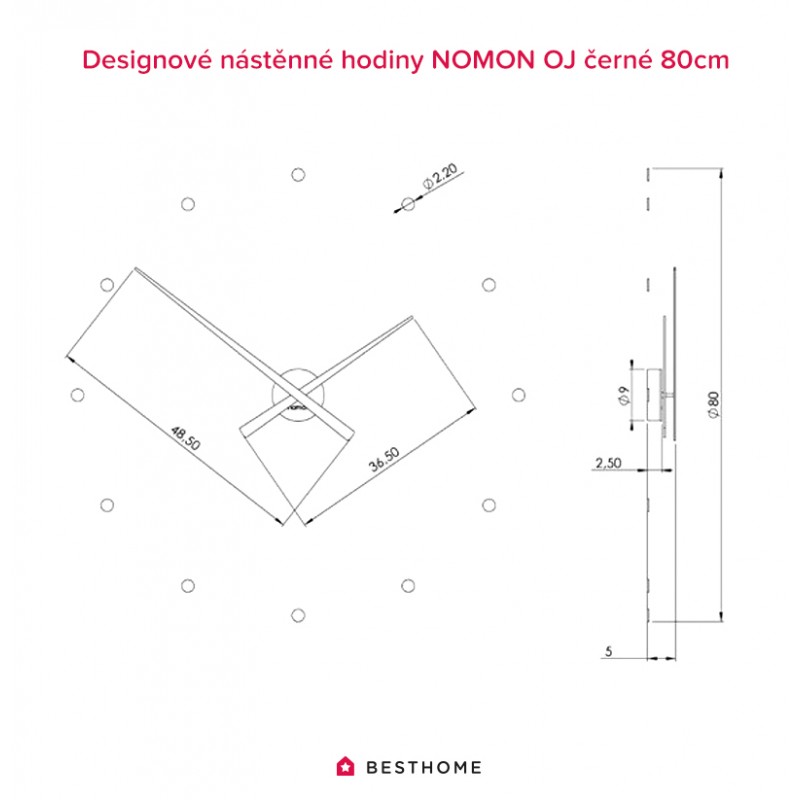 Celkový (bodový) průměr hodin: Ø 80 cm