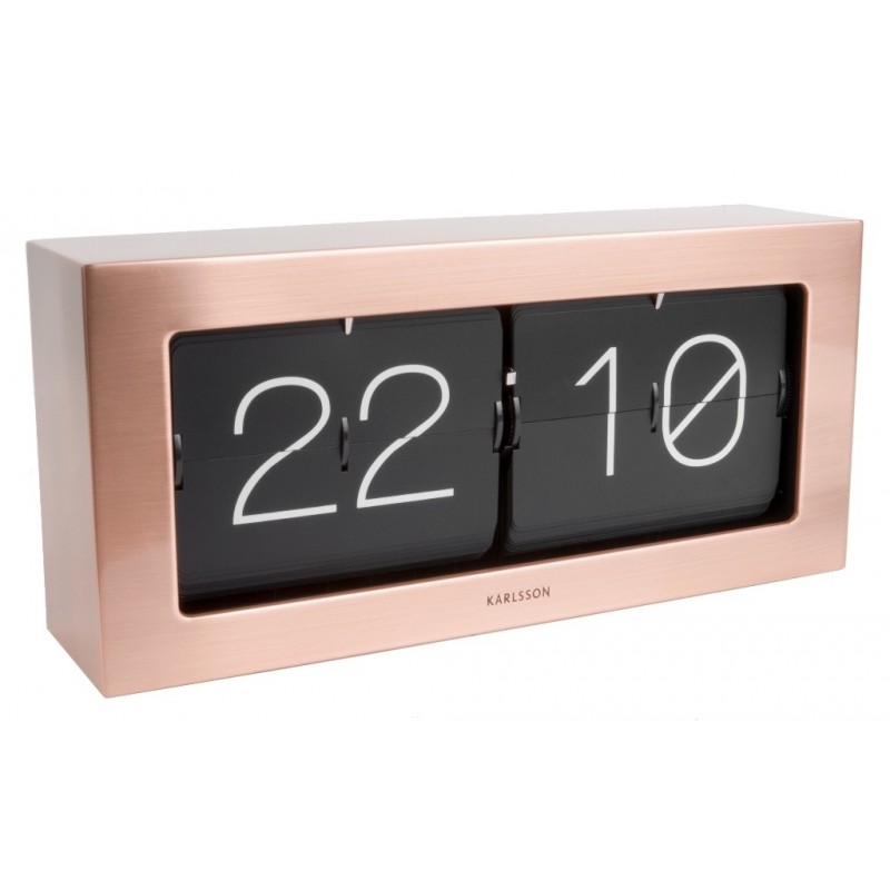 Překlápěcí hodiny v designu broušené mědi..