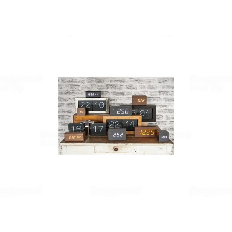 LED stolní hodiny s budíkem v imitaci dýhy v odstínu wenge.