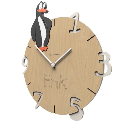 Dětské nástěnné hodiny s vlastním jménem CalleaDesign tučňák 36cm < >