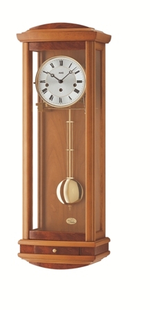 Hodiny tvoří kombinace třešňového dřeva a postříbřeného ciferníku.