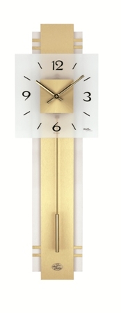 Luxusní kyvadlové hodiny s chromovými žlutými doplňky.