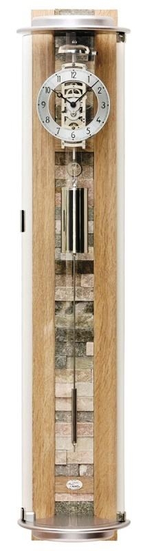 Luxusní mechanické nástěnné kyvadlové hodiny s naturálními kamennými elementy zasazenými ve dřevě Sonoma a chromovaným kyvadlem a závažím.