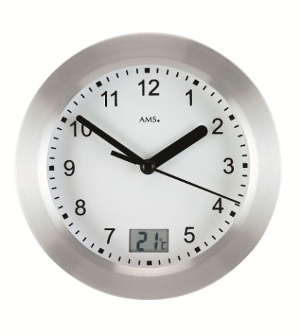 Nástěnné, stolní a podlahové hodiny AMS jsou spojením elegance a precizní německé kvality. Do detailu propracované hodiny AMS jsou vyráběny již více jak 100 let v německém Schwarzwaldu. Hodiny AMS jsou osazovány přesnými a spolehlivými strojky, které zaručují spolehlivý a přesný chod a spokojenost zákazníků po celém světě po mnoho let. Pro výrobu těchto hodin jsou používány materiály a zpracování té nejvyšší kvality, proto jsou hodiny této značky jedničkou ve své produktové třídě. Hodiny AMS jsou i z těchto důvodů také ideálním funkčním exklusivním dárkem, pro všechny slavnostních příležitostí. Německé hodiny AMS jsou hodiny s trvalou hodnotou. Designové nástěnné hodiny s digitálním teploměrem. Ciferník je krytý minerálním sklem. Průměr: 17cm Hloubka hodin: 6cm Quartzový hodinový strojek na baterii. Materiál: sklo/aluminium. Prodloužená záruka na 3 roky! Made in Germany