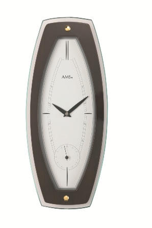 Nástěnné, stolní a podlahové hodiny AMS jsou spojením elegance a precizní německé kvality. Do detailu propracované hodiny AMS jsou vyráběny již více jak 100 let v německém Schwarzwaldu. Hodiny AMS jsou osazovány přesnými a spolehlivými značkovými strojky, které zaručují spolehlivý a přesný chod a spokojenost zákazníků po celém světě po mnoho let. Pro výrobu těchto hodin jsou používány materiály a zpracování té nejvyšší kvality, proto jsou hodiny této značky dlouhodobou jedničkou ve své produktové třídě. Hodiny AMS jsou i z těchto důvodů také ideálním funkčním exkluzivním dárkem, pro všechny slavnostní příležitostí. Německé hodiny AMS jsou hodiny s trvalou hodnotou. Elegantní nástěnné hodiny. Vteřinová ručička má svůj vlastní ciferník. Hodiny tvoří kombinace ořechového dřeva a fazetového minerálního skla. Rozměry: 19x44cm Hloubka hodin: 5cm Quarzový hodinový strojek na baterii. Materiál: sklo/dřevo