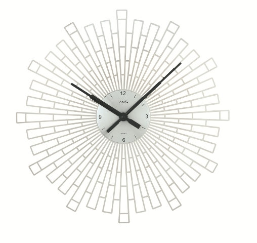 Nástěnné, stolní a podlahové hodiny AMS jsou spojením elegance a precizní německé kvality. Do detailu propracované hodiny AMS jsou vyráběny již více jak 100 let v německém Schwarzwaldu. Hodiny AMS jsou osazovány přesnými a spolehlivými značkovými strojky, které zaručují spolehlivý a přesný chod a spokojenost zákazníků po celém světě po mnoho let. Pro výrobu těchto hodin jsou používány materiály a zpracování té nejvyšší kvality, proto jsou hodiny této značky dlouhodobou jedničkou ve své produktové třídě. Hodiny AMS jsou i z těchto důvodů také ideálním funkčním exkluzivním dárkem, pro všechny slavnostní příležitostí. Německé hodiny AMS jsou hodiny s trvalou hodnotou. Elegantní nástěnné hodiny s motivem paprsků. Průměr: 46cm Hloubka hodin: 4cm Quarzový hodinový strojek na baterii. Materiál: imitace lesklého chromovaného kovu. Prodloužená záruka na 3 roky! Made in Germany.