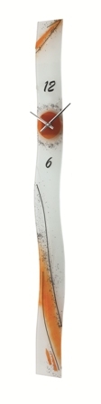 Luxusní nástěnné hodiny s detaily v oranžové barvě.