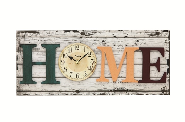 Netradiční nástěnné hodiny s nápisem "home" neboli domov.