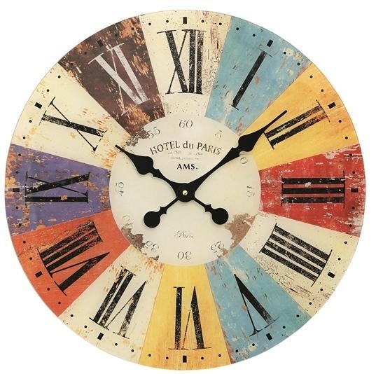 Nástěnné hodiny v designu malovaného dřeva.