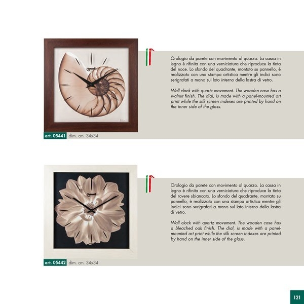 Jednotlivé designy obrazových hodin jsou tištěné přímo na speciální obrazové panely, které jsou včetně hodinových ručiček kryté zarámovaným ochranných sklem.