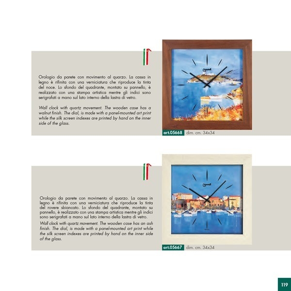 Jednotlivé designy obrazových hodin jsou tištěné přímo na speciální obrazové panely, které jsou včetně hodinových ručiček kryté zarámovaným ochranných sklem.