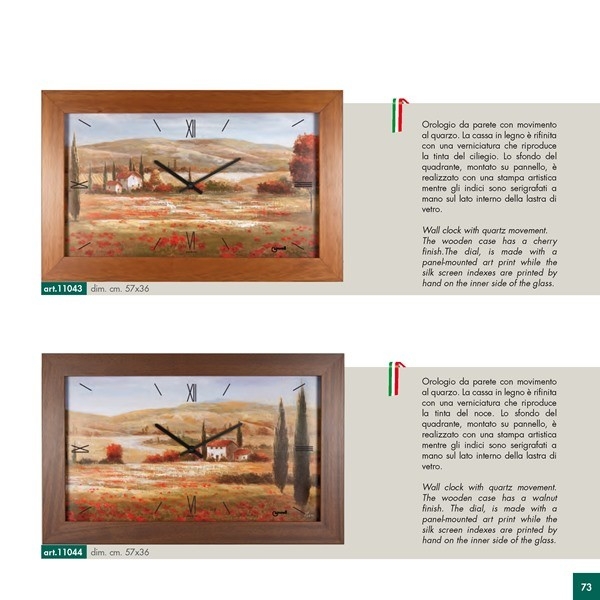 Jednotlivé designy obrazových hodin jsou tištěné přímo na speciální obrazové panely, které jsou včetně hodinových ručiček kryté zarámovaným ochranných sklem.