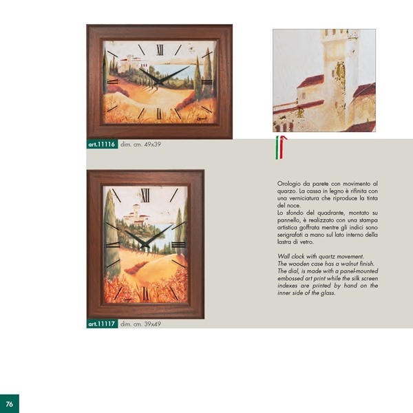Jednotlivé designy obrazových hodin jsou tištěné přímo na speciální obrazové panely, které jsou včetně hodinových ručiček kryté zarámovaným ochranných sklem.