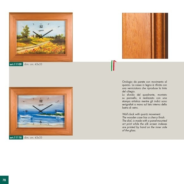 Jednotlivé designy obrazových hodin jsou tištěné přímo na speciální obrazové panely, které jsou včetně hodinových ručiček kryté zarámovaným ochranných sklem.