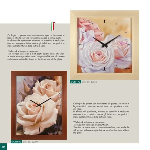 Jednotlivé designy obrazových hodin jsou tištěné přímo na speciální obrazové panely, které jsou včetně hodinových ručiček kryté zarámovaným ochranných sklem.