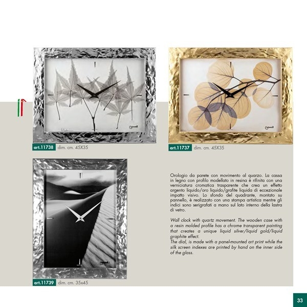 Jednotlivé designy obrazových hodin jsou tištěné přímo na speciální obrazové panely, které jsou včetně hodinových ručiček kryté zarámovaným ochranných sklem.
